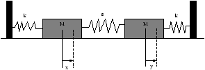 - enery is transfered from mass 1 to mass 2 (and back again, and again, and again ...) at the beat frequency ¶ w