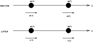 m1u1+m2u2=m1v1+m2v2