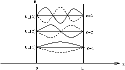 The first three energy levels E1 , E2 , E3 are plotted in figure 2.3 and the corresponding Un are sketched at each En .