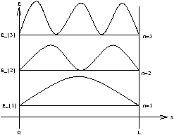 Just as in figure 2.1 when an electron is confined in a small region of space it forms standing waves. Again, there is a quantum number associated with the standing wave.