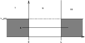 But the more interesting case is E<V0 as in figure 2.5. Classically E=K+U if E<V0 . The kinetic energy is negative and v is imaginary therefore classically particles must be confined to II.
