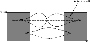 The Schrödinger equation for region II, if E in figure 2.5 is greater than V0 the Y term would be positive and we have oscillating solutions like equation 2.24 with different k and l in and outside the well.