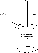 Figure 4.2 shows Pascal's Barrel which demostrates his law. If the pipe is long enough, fill it with water, therefore the pressure becomes very large and is transmitted to the barrel, therefore the barrel explodes!