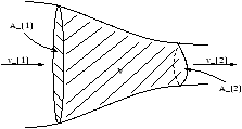 In a time D t the mass of fluid flowing into V across A1 is r1A1v1D t . The mass of fluid moving out of V across A2 is r2A2v2D t . Therefore the change in mass in the volume V in a time D t is