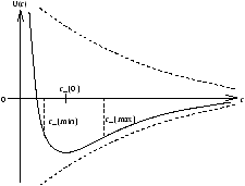 At r=rmin or r=rmax the potential energy is at a maxium ( U0+K ) whilst the kinetic energy is zero. If U0+K>0 then rmax®¥ and the solid melts. To calculate the latent heat of fusion we need to allow for the fact that an atom will interact with n1 nearest neighbours, n2 next nearest, etc. For a Van der Waal's Solid only the nearest neighbours are significant. So the molat latent heat of fusion is