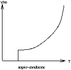 In some metals at a critical temperature a phase transistion takes place and r suddenly drops to zero resulting in super-conductivity.