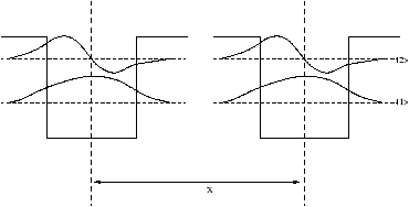 if X is very large then the wavefunctions tend to behave as if they where functions of isolated atoms. However as X decreases the higher energy states touch first interacting quantum mechanically. For example state |1> (normally the higher states touch first)