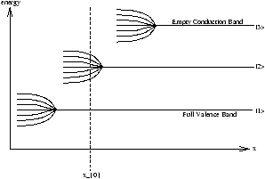 if the number of electrons present per atom were enough to exactly fill all the levels which started at |3> the lowest energy might be at X0 . We note however that each band contains one electron state for each original atom (or lattice point in a crystal).