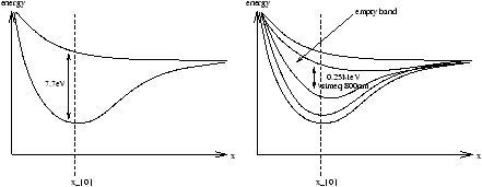 If c=ct is a tiny for a one dimensional solid then the bonding/anti-bonding energy seperation is about 7.7eVl-1 which is about 160nm . If we put a chain of carbon atoms together be get