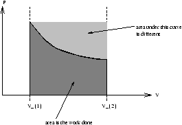 òV1V2PdV depends on the curve from P1V1® P2V2 , ie. work done depends on the process (work is not a function of state).