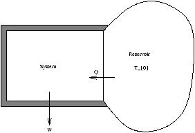 Let the system perform work W drawing heat Q from the reservoir. The system has the initial and final temperature T0 (but may have T T0 in between).